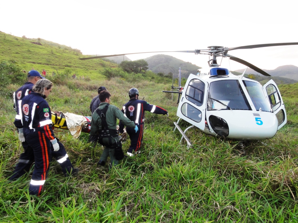 Circulamos, a fim de identificar obstáculos e pousamos no milagroso espaço de um pasto inclinado… Aeronave no solo, trabalho bem feito até então, socorremos um jovem de aproximadamente 25 anos com fratura de bacia, que sangrava bastante. Neste instante a busca era por acondicioná-lo da melhor maneira, diante do tumulto de populares e familiares que choravam ao pé do acidentado…