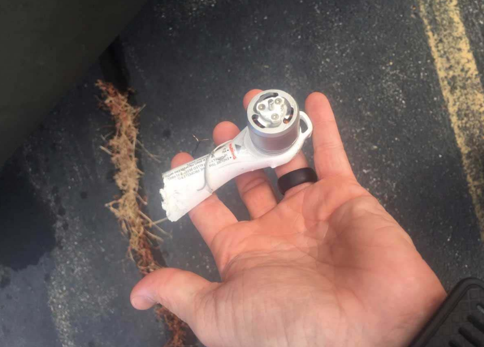 O braço e o motor do drone DJI Phantom 4 foram recuperados após o acidente