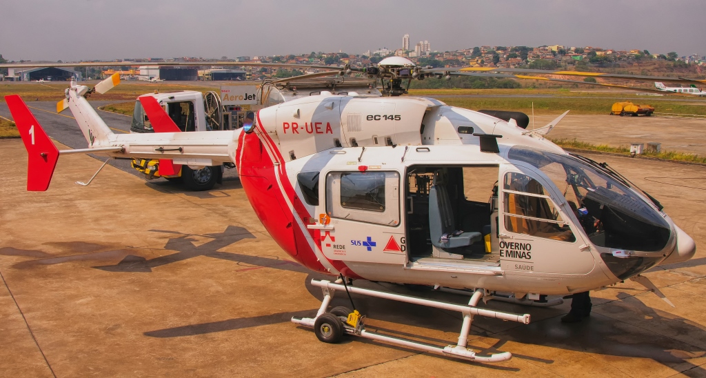 O Helibras EC-145 PR-UEA no aeroporto da Pampulha, Belo Horizonte, MG (Imagens: Roberto Caiafa)
