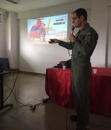 Na palestra foram abordados assuntos sobre características técnicas das aeronaves utilizadas pelo serviço aéreo, orientações para pouso do helicóptero (Bombeiro 01) em ocorrências, embarque e desembarque de vítimas e apoio solo. Também foi comentada a implantação do serviço aeromédico com o avião Bombeiro 03 que deverá ocorrer no mês de março desse ano.