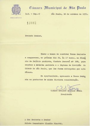 - Medalha Anchieta e Diploma de Gratidão da Cidade de São Paulo entregue em 26 de outubro de 1972, pela Câmara municipal de São Paulo, etc.