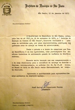 - O Estado de São Paulo, de 12 de outubro de 1972, Jornal da Tarde, pg. 21, “Um prêmio para onze pilotos, heróis do edifício Andraus.”;