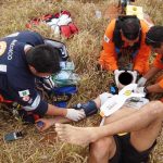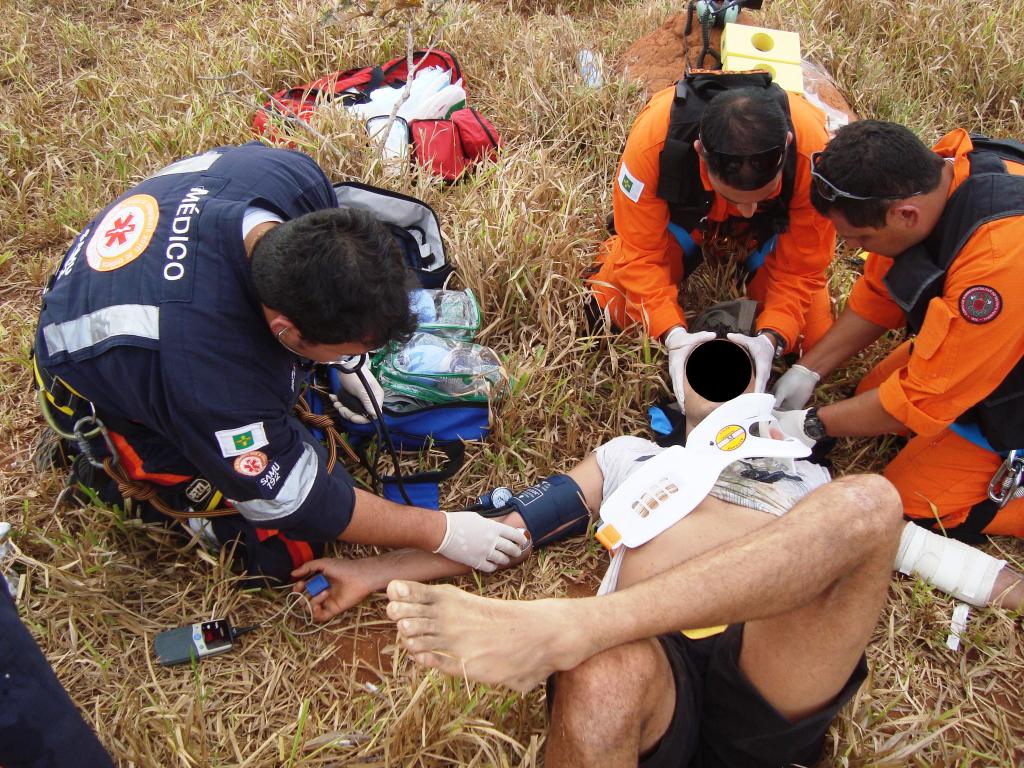 O tempo de deslocamento da Base até o local do acidente foi de cerca de 20 minutos. Após o pouso verificou-se tratar de paciente do sexo masculino com várias escoriações e equimoses, alteração de nível de consciência, pressão não-mensurável, taquicardia e sudorese também foram alguns dos sitomas encontrados.