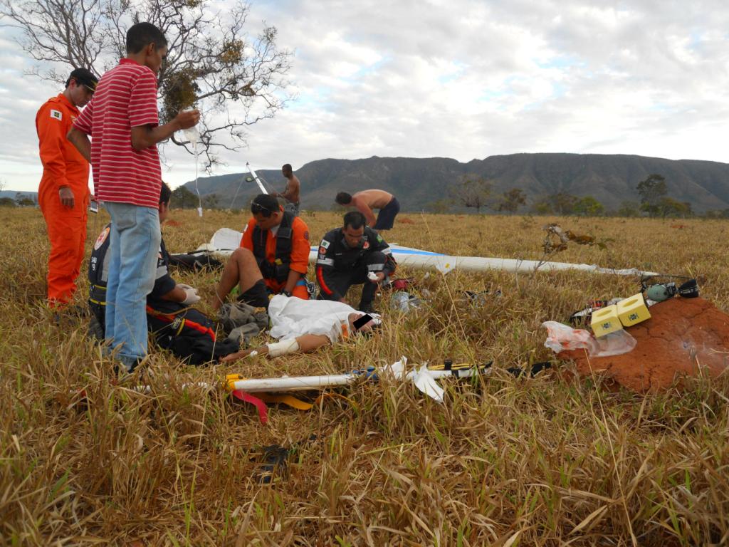 No domingo, dia 11 de Julho, por volta das 16:30h, a equipe de serviço no helicóptero RESGATE 03 (EC 135) do 3ºBBS/CBMDF, composta por pilotos e tripulantes do CBMDF e médico e enfermeiro do SAMU 192 DF foram acionados para atendimento a vítima de queda de asa delta, na localidade “Vale do Paranã”.