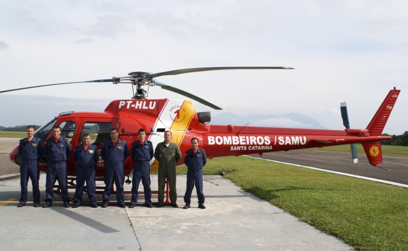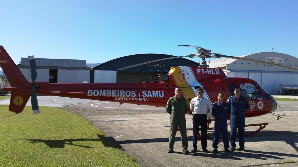 Oficiais Pilotos do BOA (Batalhão de Operações Aéreas) do Corpo de Bombeiros de Santa Catarina que concorrem as escalas de Comandante de Operações Aéreas, realizaram cheque de tipo na aeronave Esquilo (H350), após conclusão de treinamento e adaptação ministrados pelos instrutores de voo Ten Cel BM Edupércio e Maj PM Ricardo.