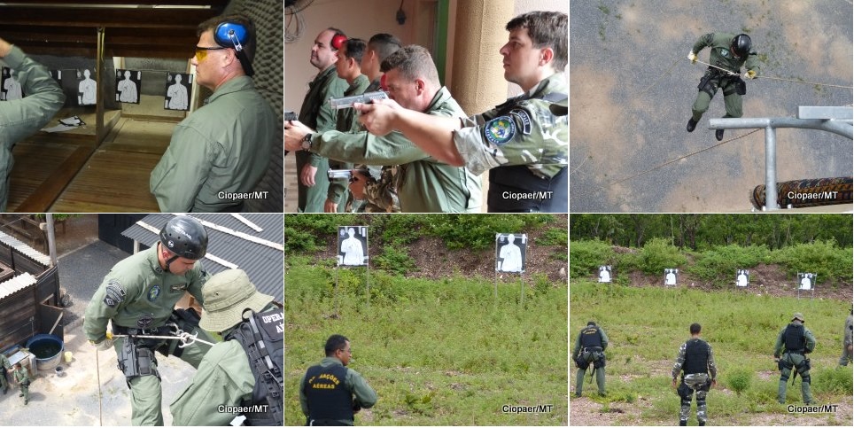 Já a instrução de tiro foi ministrada em estande situado no distrito de Praia Grande em Várzea Grande/MT sendo dado ênfase ao manuseio e técnicas de tiro com carabina calibre 556 e pistola calibre .40. Diversos tiros foram realizadas, especialmente na posição sentado, por ser a forma costumeira que o tripulante operacional realiza tiros quando embarcado em helicóptero.