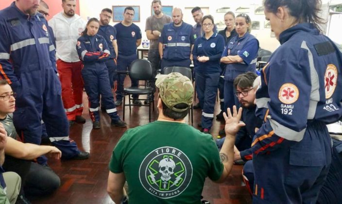 Paraná – Nos dias 29 a 31 de maio, a Escola Superior de Polícia Civil (ESPC) do Paraná recebeu médicos e enfermeiros do Serviço de Atendimento Móvel de Urgência (SAMU 192) e do Serviço Integrado de Atendimento ao Trauma em Emergência (SIATE) de todas as regiões do Estado do Paraná para o curso de Atendimento Pré-Hospitar (APH) em Combate, que aconteceu em Curitiba.