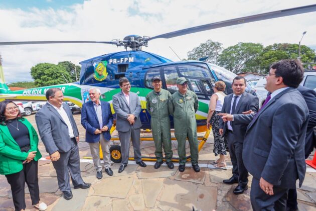 Piauí – O governador do Piauí, Rafael Fonteles, entregou nesta terça-feira (19), um helicóptero, viaturas e equipamentos para as Polícias Civil e Militar. Ao lado do diretor-executivo Alberto Raposo Neto, representando o Ministério da Justiça, foram entregues também viaturas para a Polícia Rodoviária Federal (PRF).