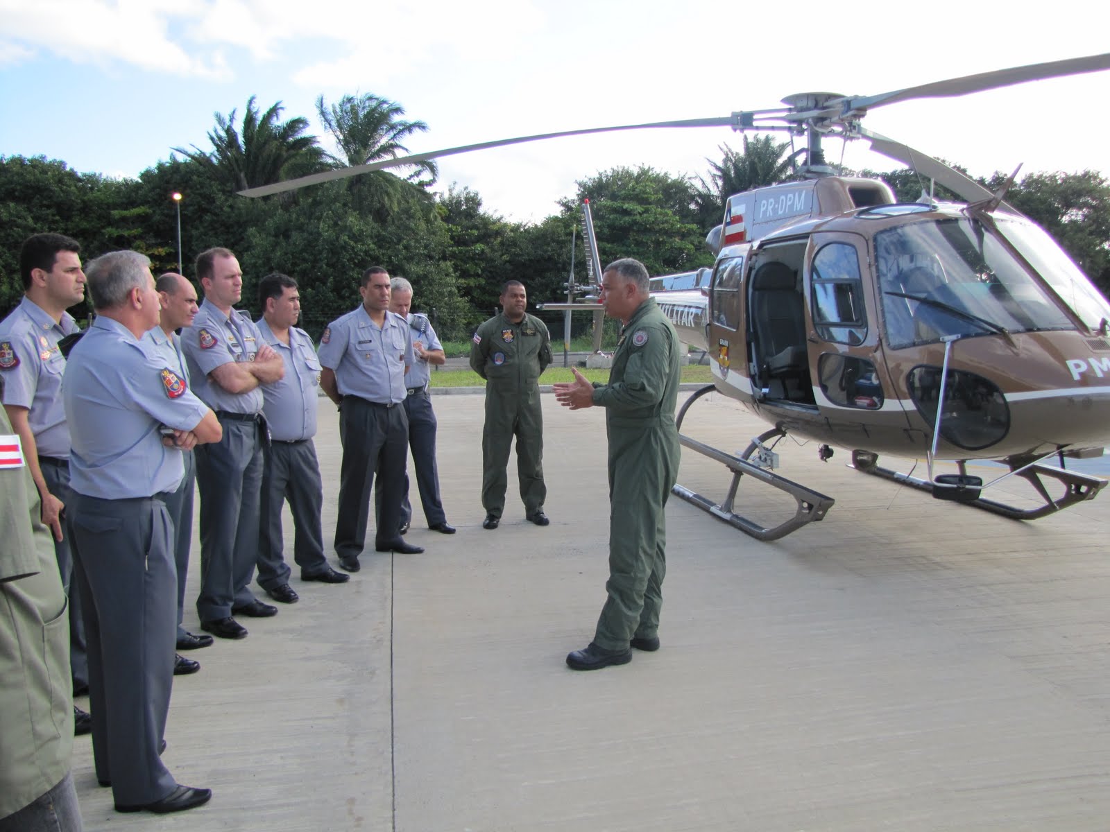 Neste segundo dia (16/08) de visita técnica à PMBA, os 12 capitães paulistas liderados pelo Tenente Coronel Agrella trocaram experiências com a tropa do Batalhão de Polícia de Choque e com o Grupamento Aéreo – GRAER da PM da Bahia.