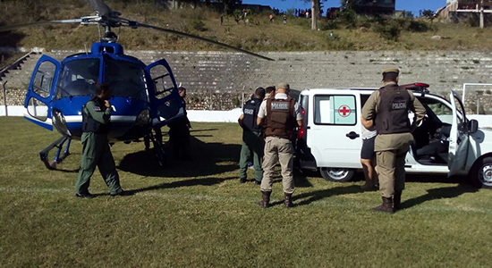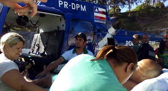 Um helicóptero do Grupamento Aéreo da Polícia Militar chegou a Campo Formoso por volta das 15h para levar o sargento Avelino para Salvador. “A gente manteve contato com o comando regional e conseguiu que o helicóptero pousasse aqui no estádio para que ele pudesse ir para um centro especializado e não fique com sequela”, disse o major Mascarenhas, comandante local da PM.