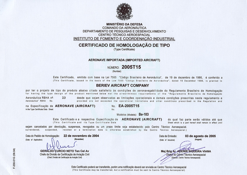 De acordo com pesquisas realizadas, a Certificação (ou Homologação) de aeronaves é, especialmente na aviação civil, uma atividade necessária à segurança do transporte aéreo. Consiste em avaliar e atestar que um determinado produto (aeronave ou seu componente) possui as características mínimas que assegurem seu uso seguro para o tipo de operação pretendida (transporte de passageiros, pulverização agrícola, combate a incêndio, transporte exclusivo de carga, operação somente em dia claro, operação noturna, entre outras).