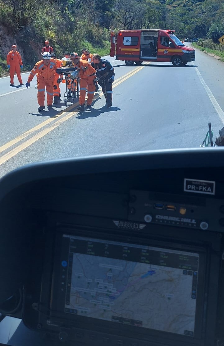 Minas Gerais – A Polícia Rodoviária Federal (PRF) e o SAMU realizaram, na manhã desta domingo (03), o resgate aeromédico de duas vítimas de um grave acidente na BR-381, próximo a Ravena. Uma terceira vítima foi resgatada no helicóptero Arcanjo do Batalhão de Operações Aéreas (BOA) do Corpo de Bombeiros.