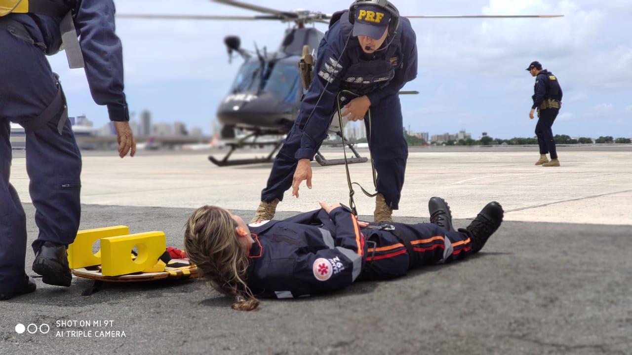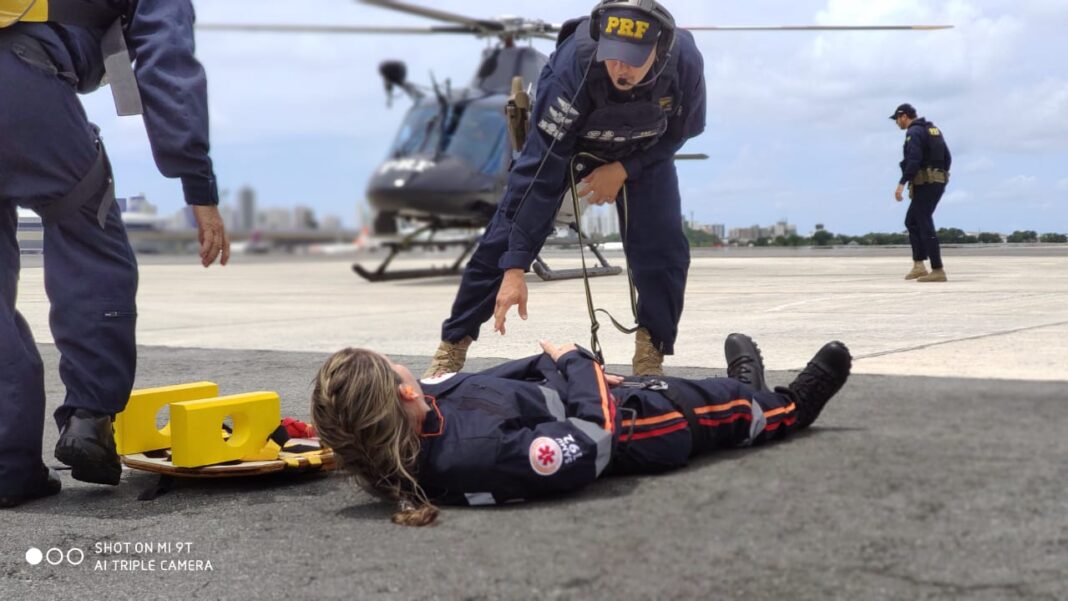Pernambuco – Polícia Rodoviária Federal (PRF) e o Serviço de Atendimento Móvel de Urgência (SAMU) realizaram, nesta terça-feira (10), uma simulação de resgate aeromédico na Base Aérea do Recife, no bairro do Jordão.