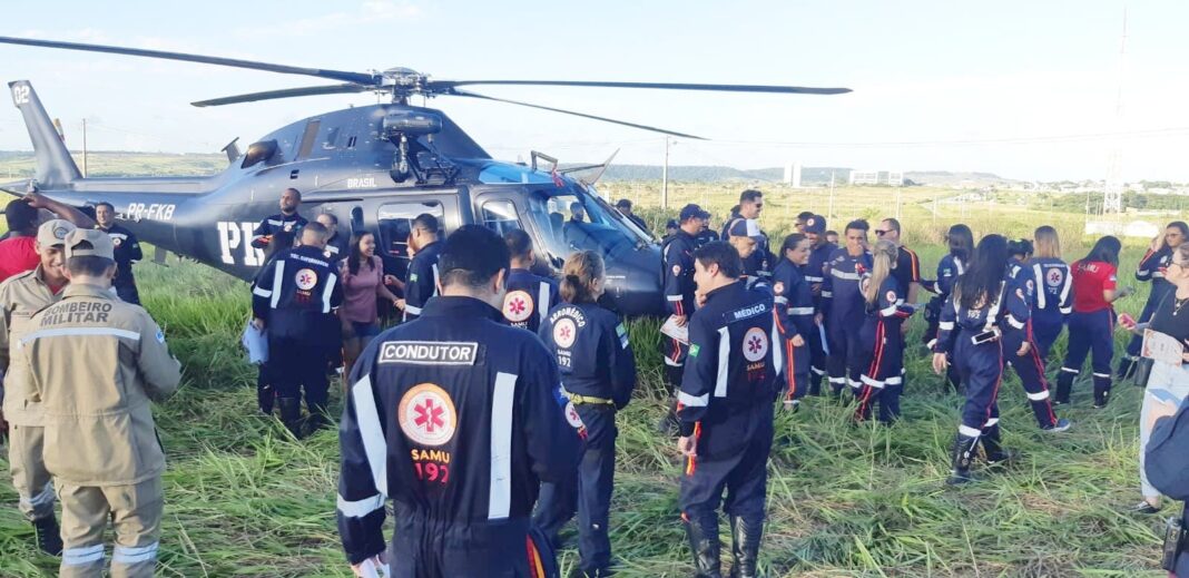 Pernambuco – No sábado (27), equipes do Núcleo de Operações Aéreas da PRF e do SAMU realizaram simulado de resgate aeromédico na cidade de Goiana, Zona da Mata de Pernambuco. O evento teve como objetivo nivelar conhecimentos dos profissionais que atuam no resgate de vítimas.