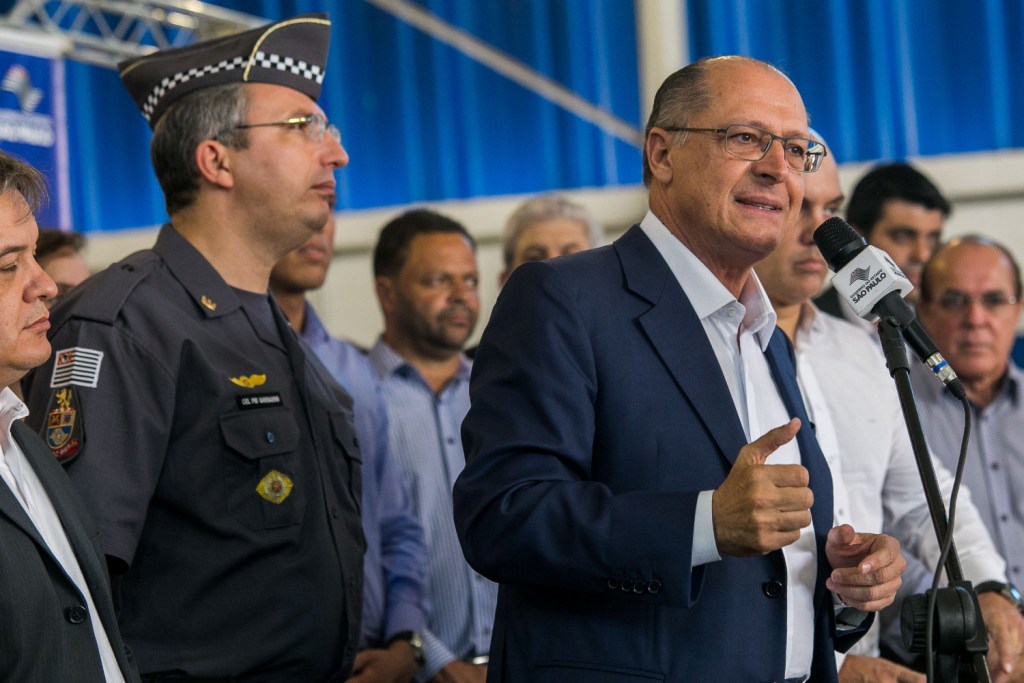 O governador Geraldo Alckmin durante entrega de aeronave ao Grupo de Resgate e Atenção as Urgências e Emergências (GRAU), grupo especializado no resgate médico estadual.