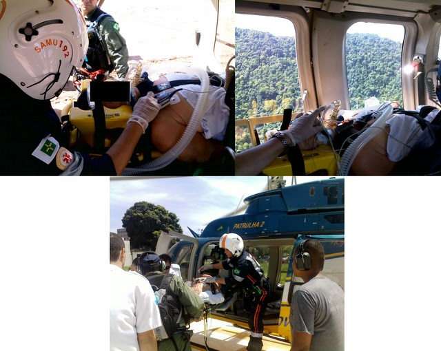 Chegada da equipe no aeroporto de Jacarepaguá às 13h e 30min, ali permanecendo até às 16h e 30min para configuração e montagem do kit aeromédico, o qual foi levado até o Rio de Janeiro utilizando o avião do DPRF.