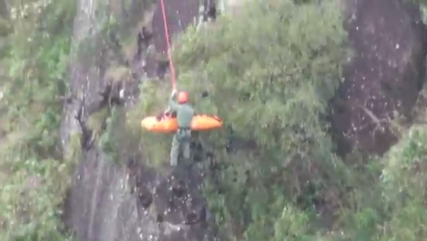 Os bombeiros chegaram até a mulher por rapel devido ao difícil acesso à trilha. Foto: GRAER