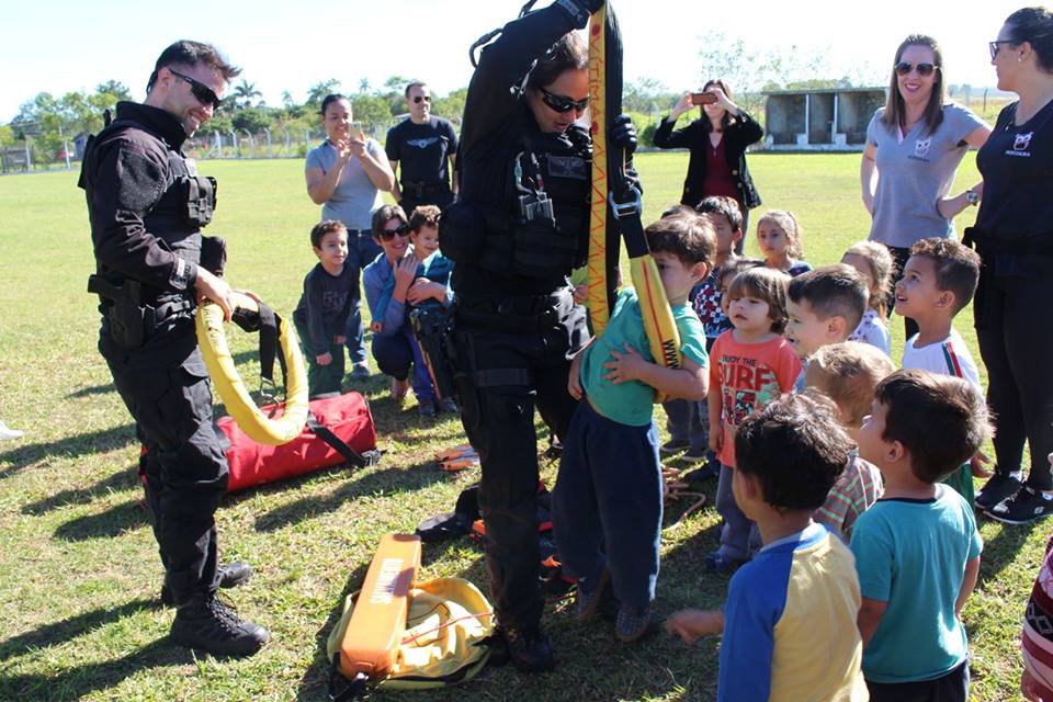 Início SAer da Polícia Civil participa de projeto escolar sobre meios de transporte em Forquilhinha Projeto sobre meios de transporte traz helicóptero do Saer em escola de Forquilhinha