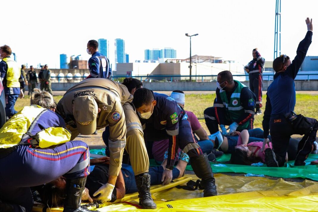 Na atividade, que aconteceu na área externa do Centro de Convenções de Pernambuco, em Olinda, foi reproduzida uma colisão entre uma van com vários ocupantes e um carro de passeio. Para fazer o resgate dos feridos, foram utilizadas ambulâncias, motos e dois helicópteros (GTA e PRF).