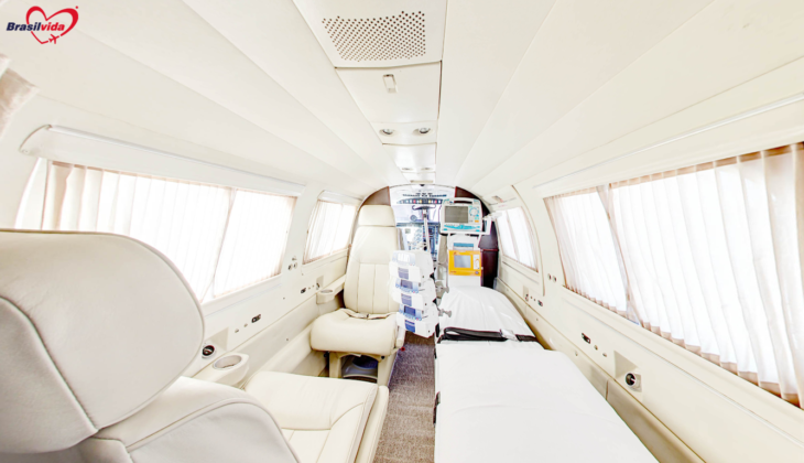Segundo o edital a aeronave utilizada deverá ser bimotora turboélice e deverá conter todos os equipamentos de suporte avançado, tanto adulto como infantil e neonatal, com as adaptações necessárias para o uso em ambientes hipobáricos (ambulância de suporte avançado tipo “E”).