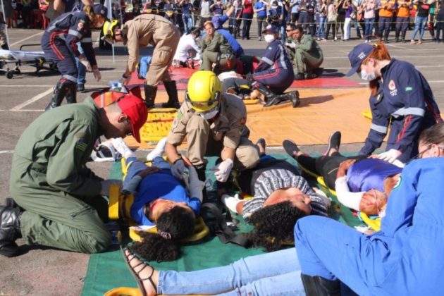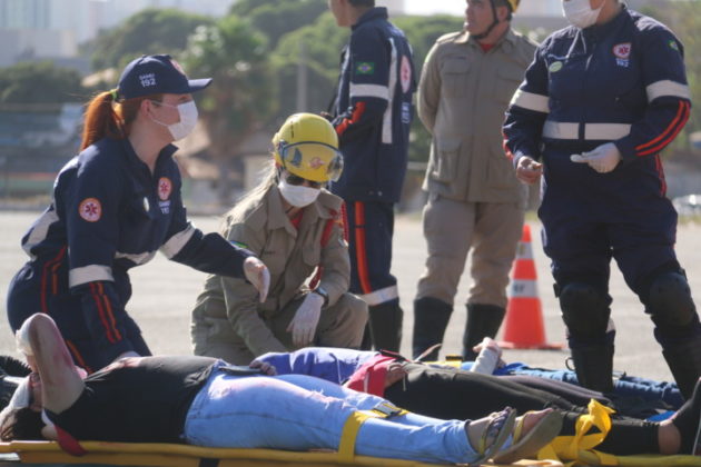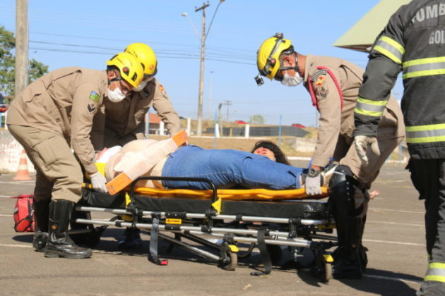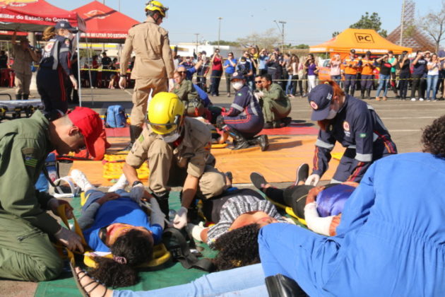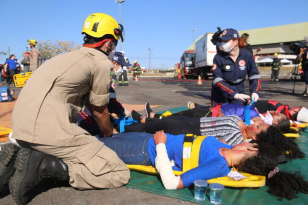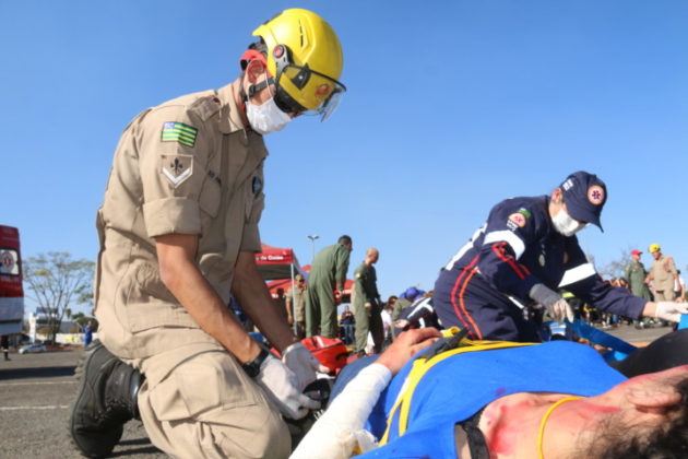 Goiás – O Corpo de Bombeiros Militar do Estado de Goiás (CBMGO) realizou nesta quinta-feira (05), às 15h, um Simulado Operacional de acidente de trânsito envolvendo um ônibus e um caminhão, com 20 vítimas, no estacionamento do Estádio Serra Dourada.