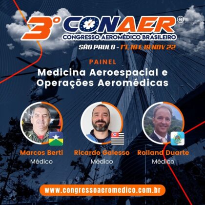 São Paulo – O 3º Congresso Aeromédico Brasileiro (3º CONAER) será um evento presencial e acontecerá nos dias 17, 18 e 19 de novembro de 2022, no auditório da Universidade Anhembi Morumbi, Campus Vila Olímpia 07, Rua Casa do Ator, 275, Vila Olímpia, São Paulo, SP.
