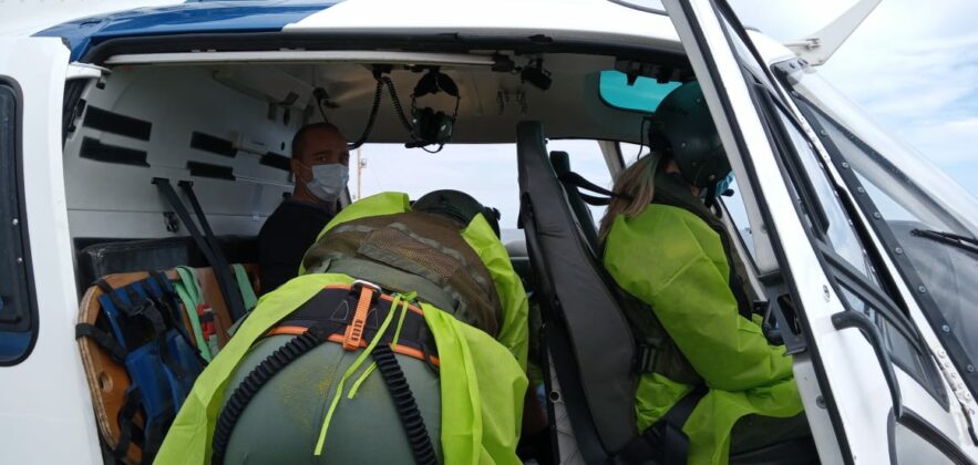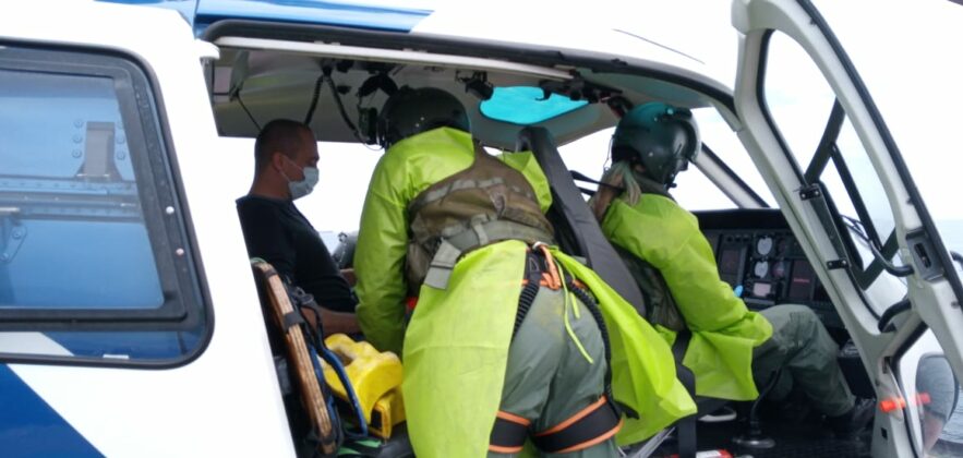 Minutos depois, os socorristas localizaram o helicóptero invertido, parcialmente submerso no mar, e encontraram três sobreviventes agarrados a coletes e boias infláveis: o piloto de 66 anos, o mecânico da aeronave de 67 anos e a enfermeira de 28 anos. Os três foram resgatados com vida e levados a hospitais da região, apresentando quadro de hipotermia, porém conscientes e estáveis.