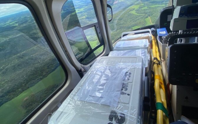 Paraná – No dia 11 de dezembro, os helicópteros Saúde 10 (do Consórcio Intermunicipal SAMU Campos Gerais), com base em Ponta Grossa, e Saúde 06 (da Unidade Aérea Pública da Secretaria de Saúde), com base em Maringá, prestaram apoio à Central Estadual de Transplantes da Secretaria da Saúde (SESA) no transporte de fígado, rins, baço e valvas cardíacas captados na Santa Casa de Maringá. Os órgãos foram transportados até o Hospital Nossa Senhora do Rocio, em Campo Largo.