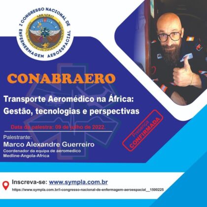 14h30 – Transporte aeromédico na África: gestão, tecnologias e perspectiva. Palestrante: Marco Alexandre Guerreiro.