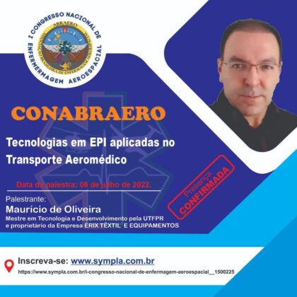18h00 – Tecnologias em Equipamento de Proteção Individual (EPI) aplicadas no transporte aeromédico. Palestrante: Mauricio Oliveira.