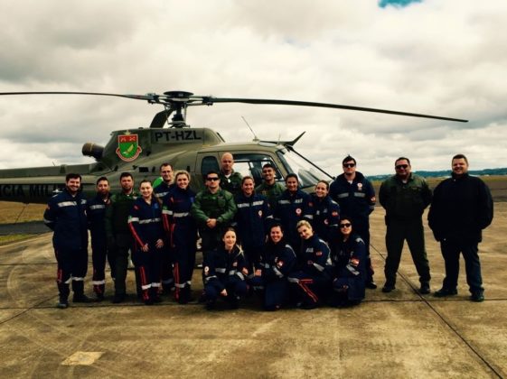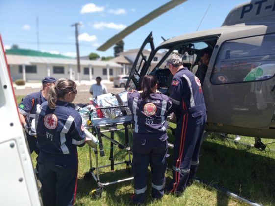 Em ação conjunta entre SAMU e Batalhão de Aviação da PM realizam transporte de bebê de 6 dias de vida até a UTI Neonatal em Joinville, SC. Foto: Divulgação.