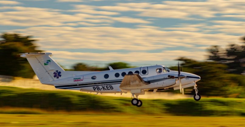 Para o último atendimento do dia foi necessário o acionamento do avião UTI, modelo King Air B200, que atende a Secretaria de Saúde do Paraná em transportes aeromédicos de longa distância. Uma gestante de trigêmeos precisou ser transportada da cidade de Cascavel para o Hospital do Rocio, em Campo Largo.