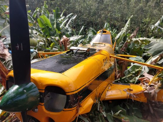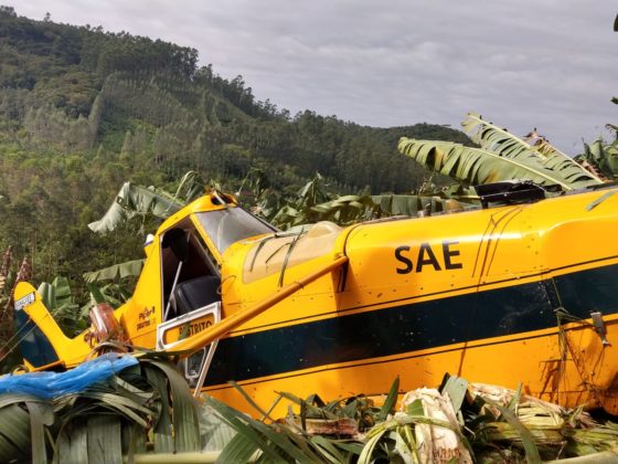 Piloto de avião agrícola sai ileso após pouso de emergência em plantação de bananas em Ilhota, SC