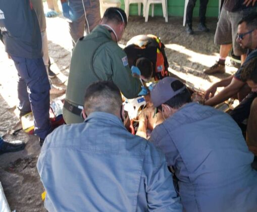 O homem foi atendido pelos bombeiros e em seguida pela equipe de operadores de suporte médico do Águia 10. Depois de estabilizado pelo médico do GRAU foi embarcado e levado de helicóptero para o Hospital Regional de Taubaté.