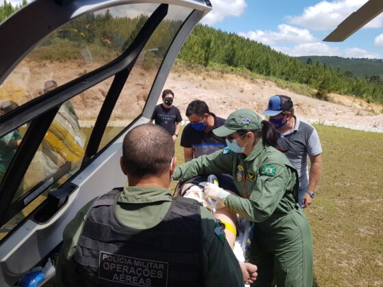 Paraná – Na manhã de sábado (25), equipe aeromédica do Batalhão de Polícia Militar de Operações Aéreas (BPMOA) socorreu um homem com politraumatismo, vítima de acidente de trânsito na BR-116, próximo ao município de Quitandinha.