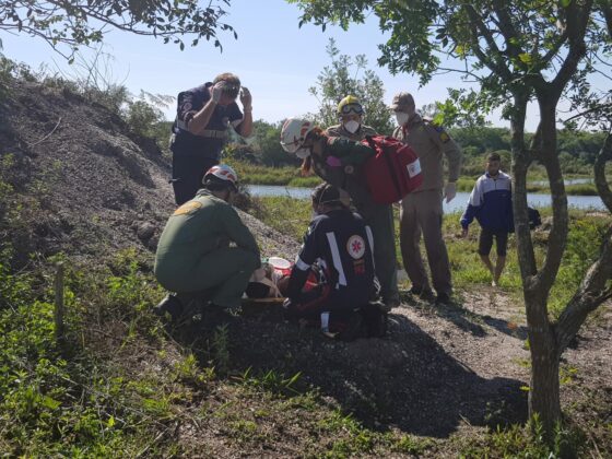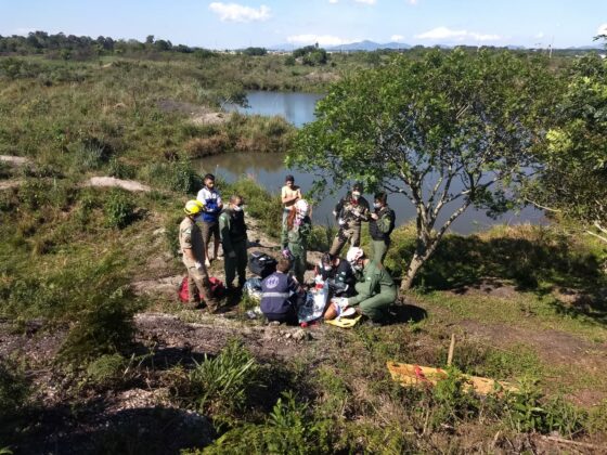 Na tarde de sábado (10), resgataram um homem de aproximadamente 30 anos, que ao pular em uma cava na região de Pinhais, bateu a cabeça e sofreu trauma raquimedular, ficando submerso por alguns minutos.