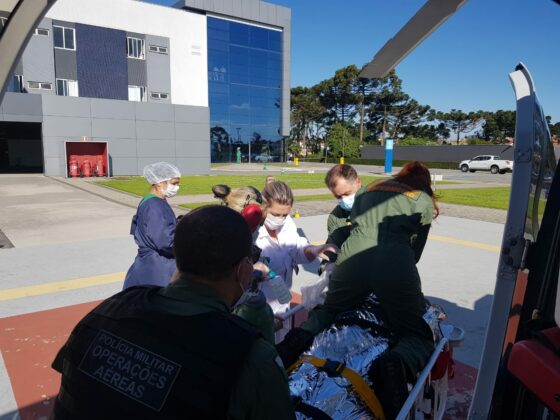 Uma vez estabilizada pelas equipes do Serviço de Atendimento Móvel de Urgência (SAMU) e do helicóptero Falcão 08 do BPMOA, a mulher foi encaminhada ao Hospital Cajuru, em Curitiba.