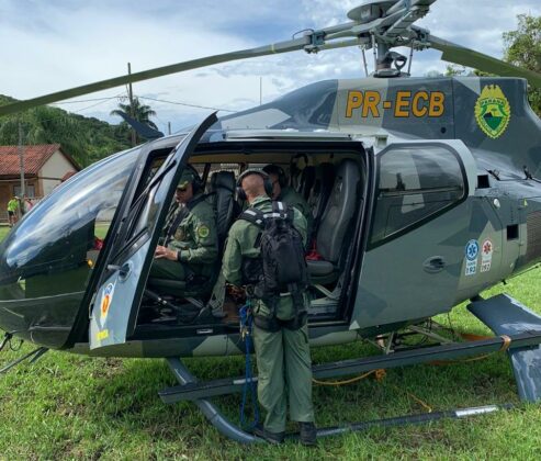 Paraná – Na manhã de domingo (08), equipe do helicóptero Falcão 08 do Batalhão de Polícia Militar de Operações Aéreas (BPMOA) foi acionada para apoiar o Corpo de Bombeiros em ocorrência de afogamento, próximo à Associação Banestado em Praia de Leste, balneário localizado no município de Pontal do Paraná.