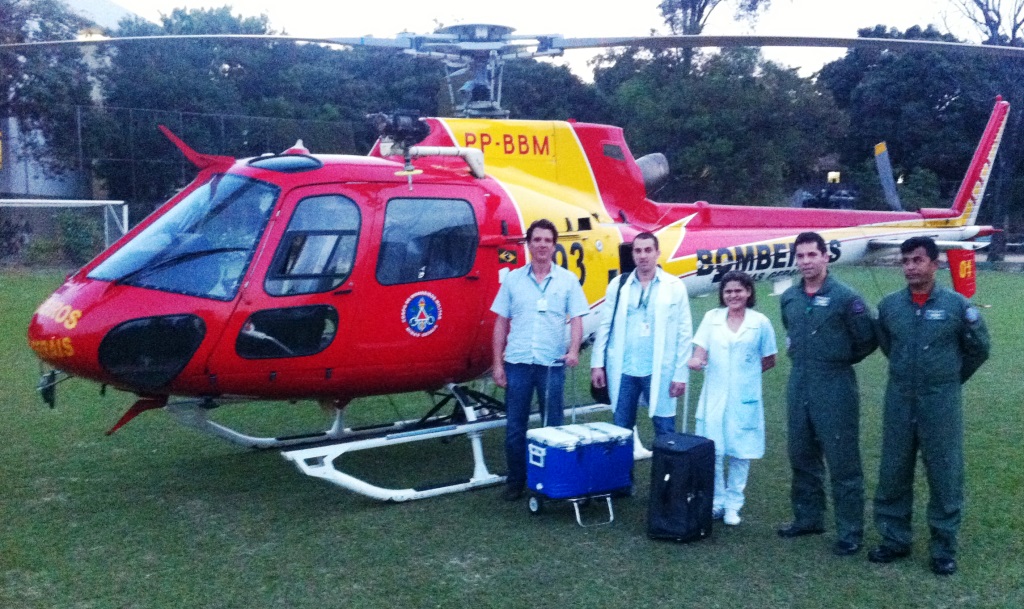 Uma equipe do Corpo de Bombeiros Militar de Minas Gerais saiu de Belo Horizonte no helicóptero “Arcanjo 01” transportando a equipe médica que levou o Fígado e Rins para serem transplantados no hospital Felício Rocho, na capital mineira.