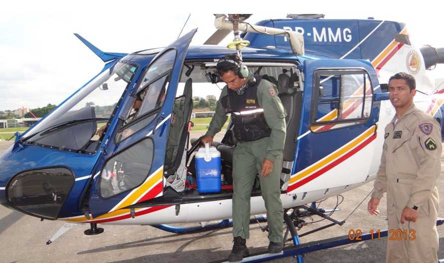 O Batalhão de Radiopatrulhamento Aéreo foi acionado às 16h10min para transportar o tecido de que o policial militar necessitava, de Belo Horizonte para Governador Valadares. De imediato, a Unidade decolou o Pegasus 14, PP-MMG, helicóptero modelo AS 350 Esquilo, tripulado pelo Cap PM Saulo, Cmt da Aeronave, Cap PM Vilas Boas, Comandante de Operações Aéreas e pelos Observadores Aéreos 1º Sgt PM Mattos e 3º Sgt PM Glauber, para, numa primeira etapa, transportar o tecido do Hospital João XXIII até o Aeroporto da Pampulha.