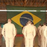 Foto: tropa do Batalhão de Radiopatrulhamento Aéreo formada durante a execução do Hino Nacional Brasileiro