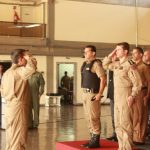 Foto: Chefe do Estado Maior da Unidade, Major PM Didier Ribeiro Sampaio, presta o anúncio regulamentar ao Ten Cel Ledwan Salgado Cotta, comandante do Btl RpAer
