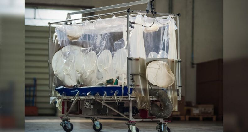Dentre tudo aquilo que foi preciso fazer e do que está sendo realizado no mundo, um equipamento recebeu destaque e teve tratamento especial, inclusive pelas autoridades de aviação civil no mundo. São as chamadas cápsulas ou cabines de isolamento de paciente, bolhas de respiração individuais (capacetes), além de sistemas mais complexos de contenção biológica, com as IsoArk.