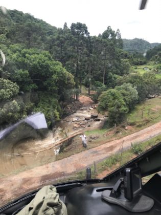 O helicóptero foi acionado pelo Serviço de Atendimento Móvel de Urgência (SAMU) para fazer o resgate das vítimas. Os dois apresentavam escoriações leves. A enxurrada havia levado as duas pontes que davam acesso a casa, onde o casal estava. Com isso, o acesso ao sítio só poderia ser feito com o auxílio da aeronave.