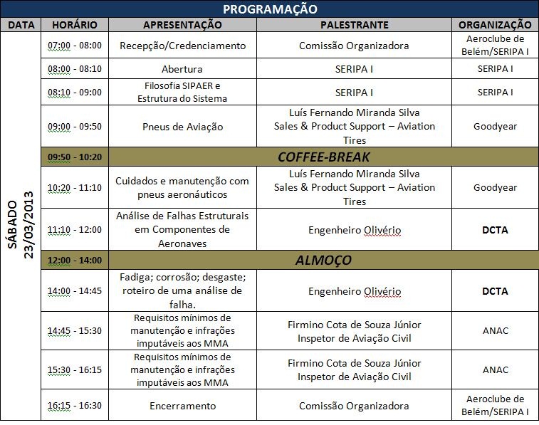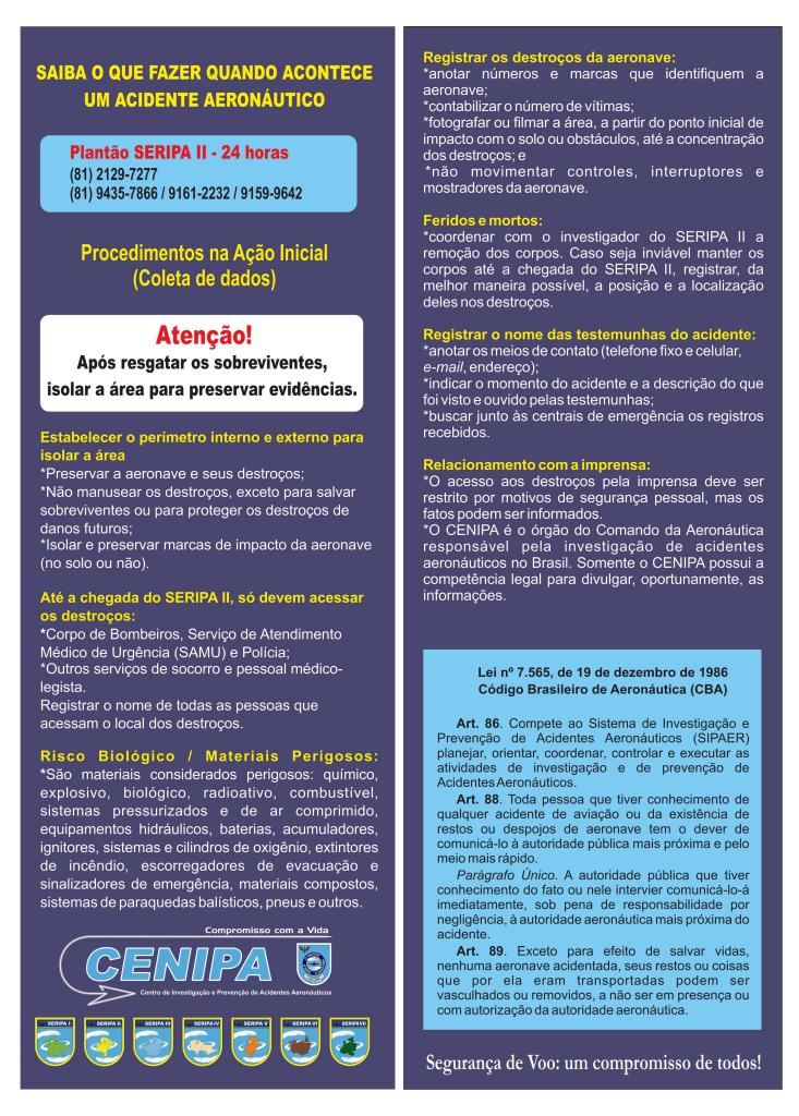 Outras informações e inscrições online serão disponibilizadas em breve no site do CENIPA.