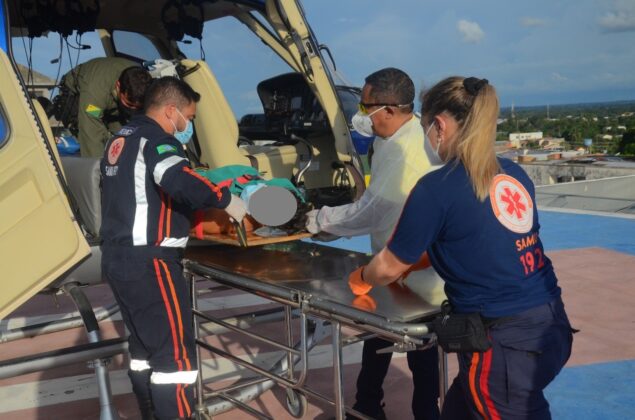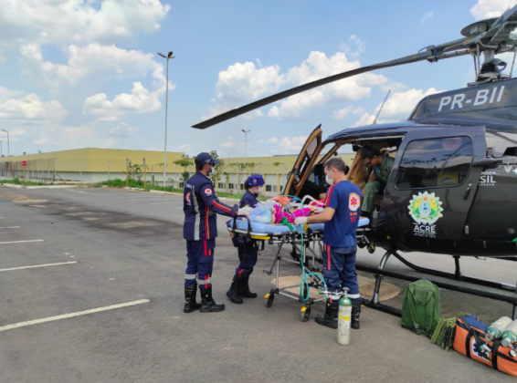 Em seguida foi acionado o helicóptero Harpia 04 do Centro Integrado de Operações Aéreas (CIOPAER) para realizar a transferência do paciente ao Pronto-Socorro do Hospital de Urgência e Emergência de Rio Branco. Uma equipe de saúde do Serviço de Atendimento Móvel de Urgência (SAMU 192) acompanhou a vítima durante o voo.