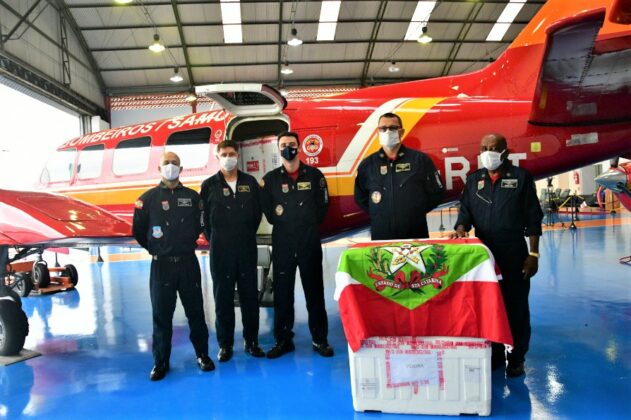Em Santa Catarina o avião Arcanjo 02 do Batalhão de Operações Aéreas (BOA) do Corpo de Bombeiros foi responsável pela distribuição de 16 mil doses no Oeste e Extremo Oeste do Estado. Na Bahia chegaram 376.600 doses e foi encaminhada para a sede do Grupamento Aéreo da Polícia Militar (GRAER), onde foi montada estrutura para recebimento e armazenamento temporário do imunizante.