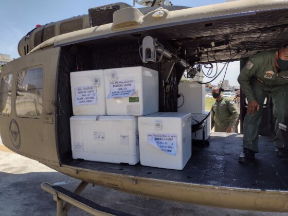 O Maranhão recebeu do Ministério da Saúde 164.240 doses da vacina e com o apoio do Centro Tático Aéreo (CTA), iniciou a distribuição das vacinas a 217 municípios. São três aviões e três helicópteros fazendo o trabalho.