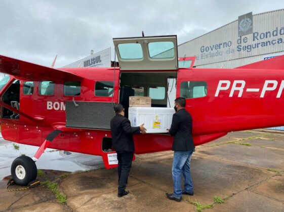 Em Rondônia cerca de 50 mil doses foram entregues por avião da FAB e também contam com o apoio do avião do Grupamento de Operações Aéreas (GOA) do Corpo de Bombeiros para distribuição das vacinas.