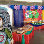 Para elas foram disponibilizadas duas camas elásticas, DJ (Sd PM Fernandes), um “cinemão”, máquina de bola de sabão, local para brincar de amarelinha, de dança das cadeiras e o DETRAN que sempre participa com os Educadores para o trânsito através do micro-ônibus, com auto-pista, carros elétricos, velocípedes e pinturas.